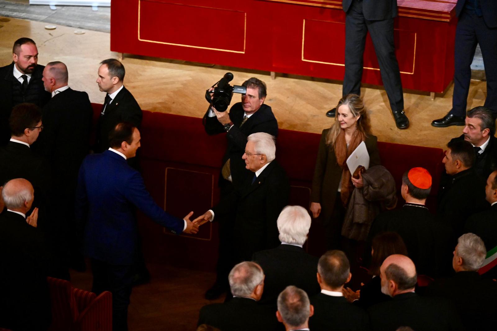 Sergio Mattarella saluta il cardinale di Torino Roberto Repole