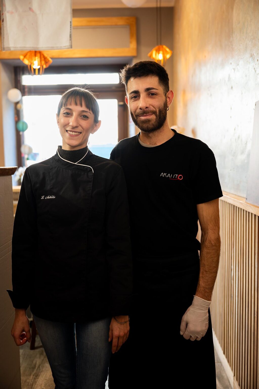 Dietro al progetto ci sono Stefano Atzeni e Luisa Nobile, coppia nella vita e nel lavoro, con percorsi diversi ma complementari. Stefano è partito dalla Sardegna e ha costruito la sua esperienza tra Italia, Francia e Piemonte, lavorando in ristoranti di livello e approfondendo anche la cucina giapponese in uno dei locali più noti della regione. Luisa, invece, ha avuto un rapporto più diretto con il Giappone: ha lavorato in piccoli ristoranti nipponici e ha vissuto un’esperienza formativa nel Paese, entrando in contatto con una dimensione domestica della cucina. A Kyoto ha incontrato un’anziana donna che le ha trasmesso ricette di famiglia, quelle custodite nelle case, non nei ristoranti.