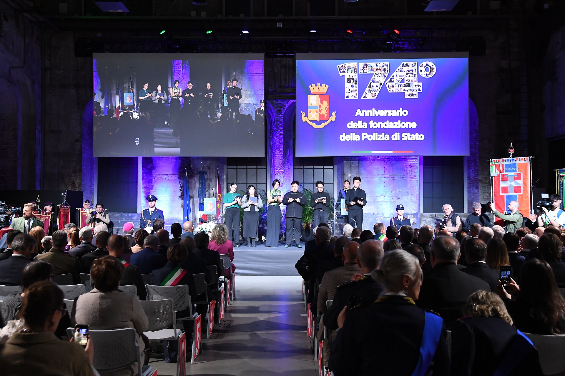 Il questore di Torino, Massimo Gambino, parla dal palco delle Ogr