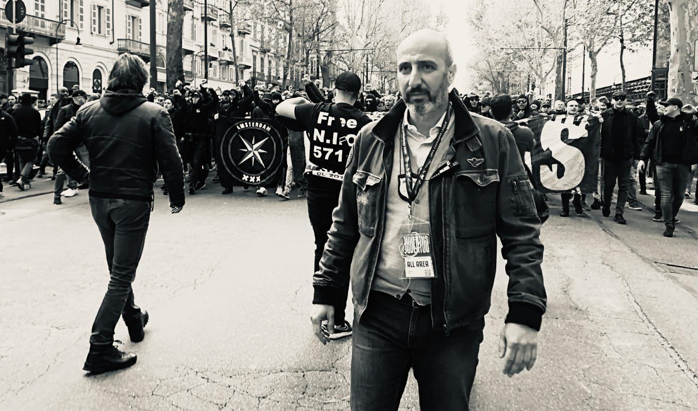 Antonio Gurgigno durante una delle tante manifestazioni, in via Accademia