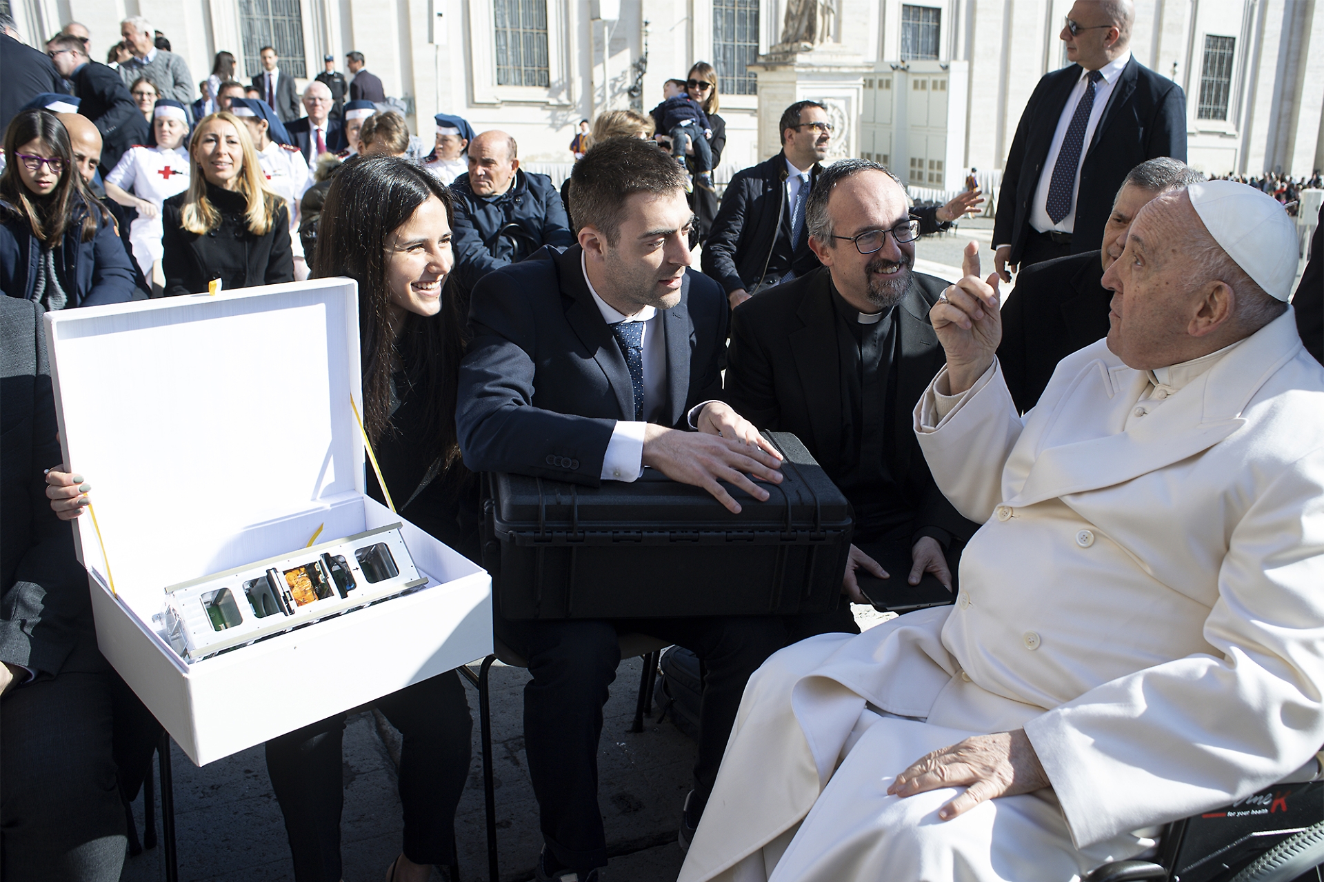 Nel terzo anniversario della "Statio Orbis" e in occasione del decimo anniversario del Pontificato, soggetti molto diversi tra loro hanno collaborato al progetto che ha coinvolto il Consiglio Nazionale delle Ricerche, l’Agenzia Spaziale Italiana, il Politecnico di Torino, l'Instituto para el Diálogo Global y la Cultura del Encuentro, l'Istituto Universitario Salesiano di Venezia e l'Apostolato Digitale dell’Arcidiocesi di Torino. La missione spaziale “Spei Satelles”, appunto, che porterà in orbita il messaggio del Papa «come segno e profezia di speranza» a bordo di un micromanufatto realizzato dal Politecnico di Torino in stretta sinergia con l’Agenzia Spaziale Italiana. I giovani ricercatori, guidati dalla professoressa Sabrina Corpino, hanno progettato e costruito in tempi record il "CubeSat 3U SpeiSat" che custodirà il "nanobook" e, a partire da questa sera, sarà in orbita ad un’altitudine di circa 525 chilometri.