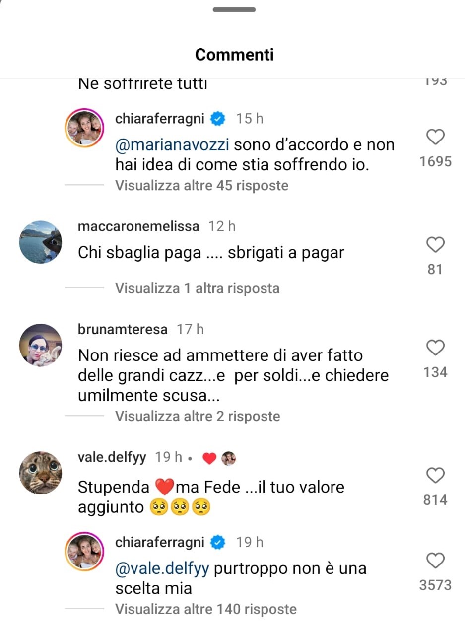 Tra i centinaia di commenti che sono stati lasciati sotto a delle foto dell’influencer, postate sul suo profilo Instagram, uno in particolare ha immediatamente attirato l’attenzione di tutti. Una fan della Ferragni, infatti, le ha scritto: «Sei stupenda, ma Fede… è il tuo valore aggiunto». Prontamente è arrivata la risposta diretta dell’influencer, che ha scritto: «Purtroppo non è una scelta mia».