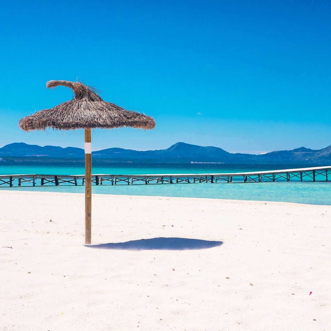 Playa de Muro, Maiorca (Spagna): Con la sua sabbia dorata e acque turchesi, circondata da pini, questa spiaggia offre vari comfort ed è facilmente accessibile.