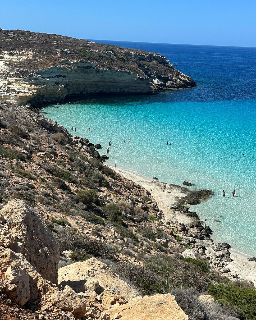 Spiaggia dei Conigli, Lampedusa (Italia): Questa spiaggia incantevole è famosa per la sua sabbia bianca e il mare blu intenso. È una riserva naturale con un numero limitato di visitatori per turno, per preservare la sua bellezza.