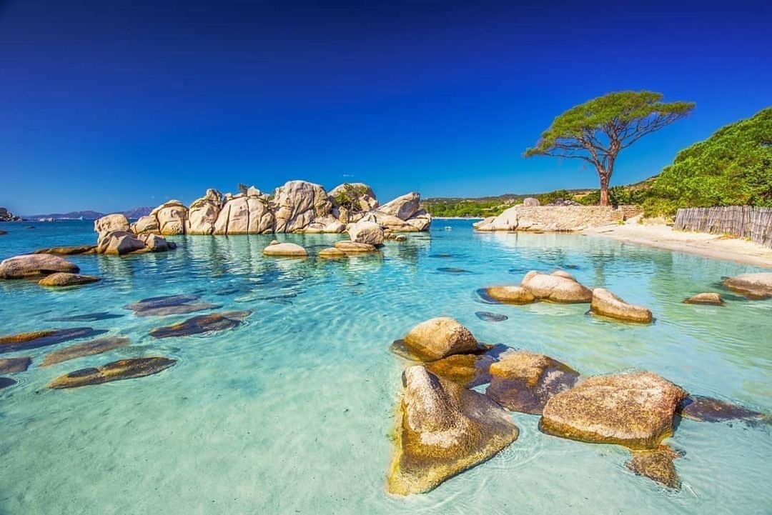 Spiaggia di Palombaggia, Corsica (Francia): Questo gioiello naturale, a breve distanza da Porto Vecchio, si presenta come un’insenatura protetta e semicircolare, con granelli fini e mare di un azzurro cristallino.