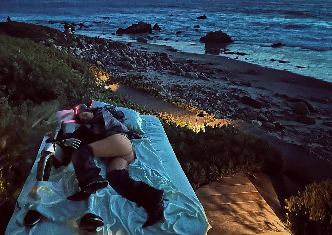 A confermare che il confine tra umano e macchina si sta assottigliando è arrivato lo shooting di Kim Kardashian con Steven Klein, un vero manifesto visivo della nostra epoca. Kim, icona pop e trendsetter globale, è ritratta mentre si scatta un selfie con il suo robot amante e amoreggia con lui sulla spiaggia. Non è solo arte, è un’anticipazione di quello che verrà.