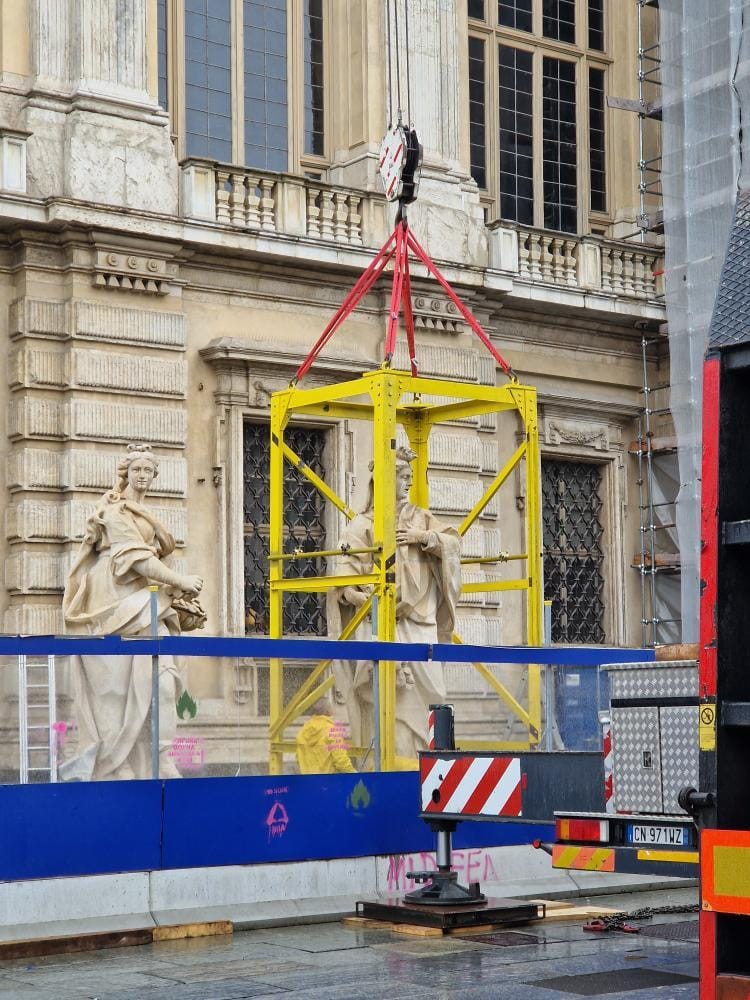 Sono state ore frenetiche quelle che questa mattina (26 marzo) hanno coinvolto, ancora una volta, le quattro statue di Palazzo Madama, Allegorie del Buon Governo: Giustizia, Liberalità, Magnanimità e Abbondanza, le quali sono state state spostate per consentire il proseguimento dei lavori di restauro della facciata della ex dimora delle signore sabaude oggi sede del Museo di Arte Antica. Ecco il video, realizzato dal nostro Amico Reporter Luca, che documenta la delicata operazione con la quale le statue, alta circa quattro metri, sono state poste, dalla sinistra, alla destra dell'ingresso principale.