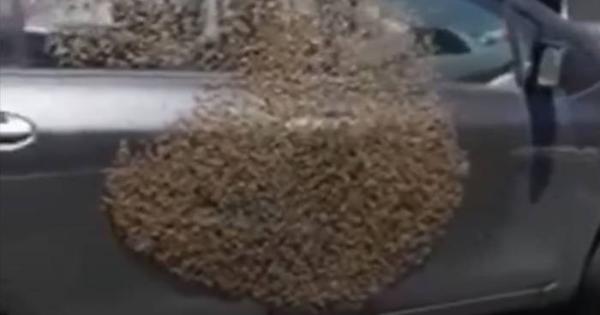 Ha parcheggiato l'auto di primo mattino, va a riprenderla verso mezzogiorno e la ritrova ricoperta di api. Trasformata in un grosso alveare.