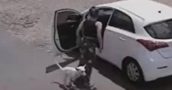 Accosta l'auto al marciapiede, fa scendere i cani, poi quello sano risale in auto, quello con la zampa rotta lo abbandona. Immagini shock.