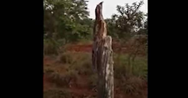 Perfetto esempio di mimetismo in Brasile, nello stato di Rondonia. L'uccello sul palo è in grado di rimanere in quella posizione per ore.