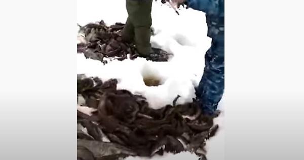Il lago è ghiacciato? Nessun problema, la pesca è ancora più semplice. Basta fare dei buchi nel ghiaccio e munirsi di arpione e di pazienza.