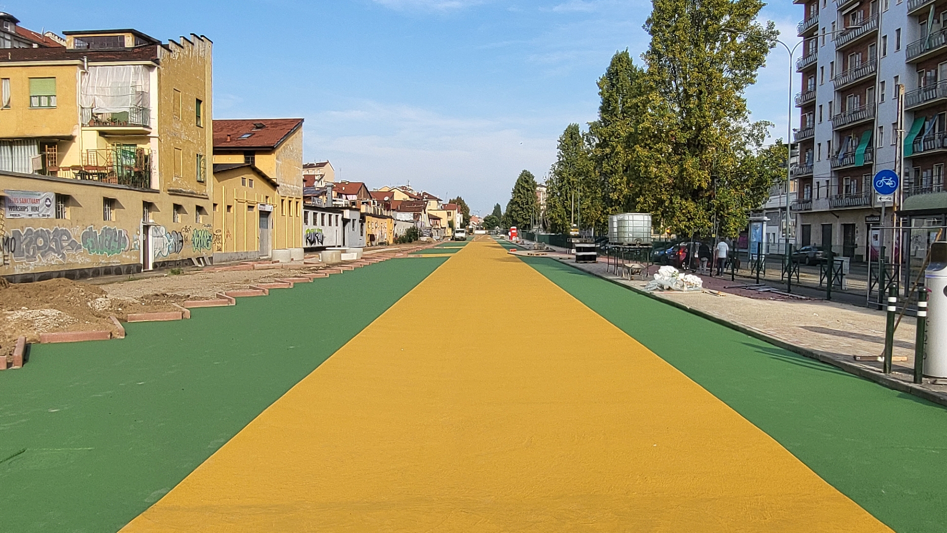Adesso però qualcosa è destinato a cambiare. Da qualche tempo sono partiti i cantieri («che procedono - sottolineano i commercianti della zona - molto a rilento») finanziati dalla Ue e che rientrano nel progetto del Comune “Interventi per una città più vivibile”. Nel grande parcheggio che in pratica “raddoppia” l’estensione di via Stradella e nel piazzale della scuola Allievi «saranno inseriti alberi e arbusti e installate attrezzature e arredi urbani smart sostenibili - si legge nel sito Internet che illustra l’opera -. In più, la pavimentazione sarà rifatta con materiali più freschi e drenanti». Nessuno però aveva detto che questi materiali sarebbero stati di un insolito e impattante color gialloverde, tinte di cui non c’era traccia neanche nei rendering che mostravano come sarebbe stata l’area una volta finiti i cantieri.