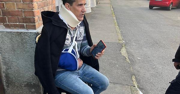 Ferito un uomo, soccorso dai sanitari del 118. E' stata la moglie a lanciare l'allarme. Molti residenti, allarmati, sono scesi in strada.