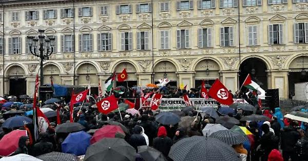 Antagonisti sul palco per evitare disordini. Dominano nel colpo d’occhio le bandiere di Potere al popolo, Fronte della gioventù comunista, no Tav e palestinesi, in una piazza San Carlo abbandonata dalle istituzioni e dai sindacati. Dal palco un portavoce dei free Palestine ha ringraziato per la solidarietà mostrata dai torinesi. Una scelta, quella di cedere il palco agli antagonisti che avrà certamente una lunga coda di polemiche.