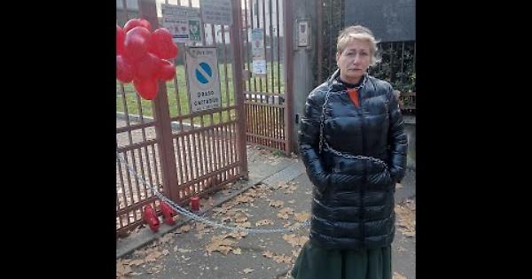 In sciopero della fame e della sete. E incatenata, con tanto di lucchetto, ai cancelli del Tribunale per i minorenni di corso Unione Sovietica. Protagonista, Natalina Colangelo, 42 anni, che questa mattina - accompagnata dalla mamma 72enne - ha deciso di incatenarsi e “armarsi” di microfono per urlare a squarciagola il suo disagio: il fatto che, a detta sua, le istituzioni le avrebbero letteralmente “strappato” suo figlio di 12 anni, ora in un centro a Casalnoceto (provincia di Alessandria). «Non intendo andarmene da qui, né mangiare o bere fino a quando non avrò la certezza che mio figlio tornerà a casa», ha urlato la donna. Non nuova ad episodi eclatanti, perché già a marzo di quest’anno si era resa protagonista, nella sua Settimo, dell’imbrattamento con della vernice della sede dei servizi sociali. Sempre col medesimo intento, cioè riavere suo figlio. Natalina era stata anche denunciata dal Comune di Settimo, per i suoi atteggiamenti aggressivi.