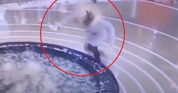 L'istante in cui la ragazza inciampa e cade nella vasca (youtube)