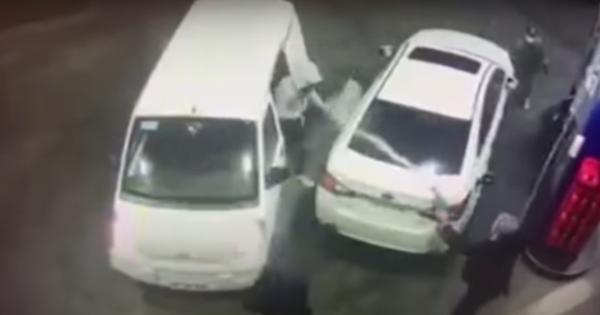 L'istante in cui l'uomo innaffia di benzina i malviventi (foto youtube)