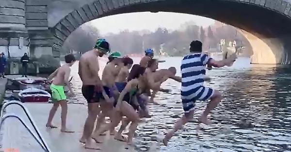 Tradizione rispettata, a Torino sono tornati gli "Orsi Polari". Si è celebrato in mattinata il cimento invernale, organizzata dalla Rari Nantes nelle gelide acque del Po adiacenti il Circolo Canottieri Caprera, al civico 22 di corso Moncalieri. Un folto gruppo di coraggiosi nuotatori di tutte le età ha sfidato il freddo pungente e, in ossequio a un rito nato addirittura nel 1899, si è tuffato nel fiume, per poi risalire frettolosamente a riva e riscaldarsi con accappatoio e vin brulé. Video di Tonino Di Marco