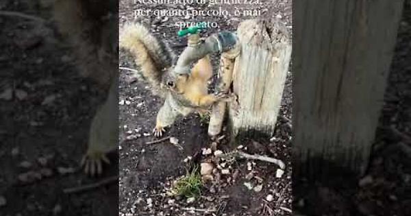 Lo scoiattolo guarda da lontano, poi una volta capito che non corre alcun pericolo si avvicina e beve di buon gusto. Una volta terminato di dissetarsi si allontana verso la natura amica. E' un lieto fine per tutti.