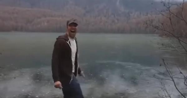 Si mette a lanciare sassi nel lago ghiacciato e quel che accade è sorprendente