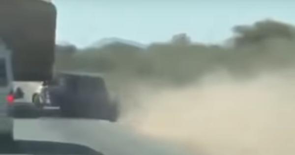 Un carico pesante rallenta la sua marcia, ma ha troppa fretta e sorpassa sulla destra. Non l'avesse mai fatto: sbanda e finisce in un fosso.