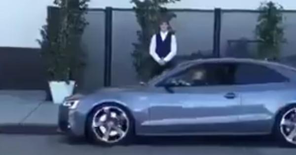 L'uomo alla guida vuol essere galante, scende per aprire la portiere alla ragazza. L'apertura improvvisa dello sportello, però, lo travolge.