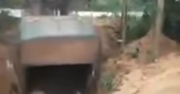 Sta scaricando carcasse di animali in una grossa buca, ma qualcosa va storto: è lo stesso camioncino a ribaltarsi e a cadere nella voragine.