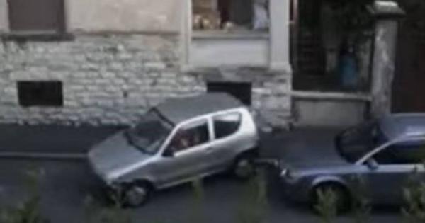 Che scena grottesca: sgasa e accelera ossessivamente, poi rinuncia a un parcheggio comodo comodo e se ne va via in maniera incomprensibile.
