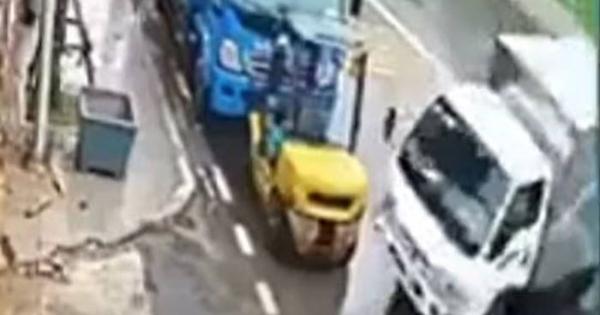 Fortunato nella sfortuna: il camion slitta sull'asfalto bagnato e si ritrova in un magazzino, perfettamente parcheggiato e senza un graffio.