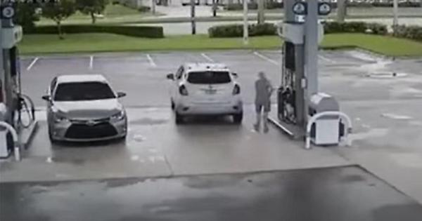 Va al distributore, esce per fare rifornimento e le portano via la borsa. Un tizio gliela ruba senza che la sfortunata s'accorga di nulla.