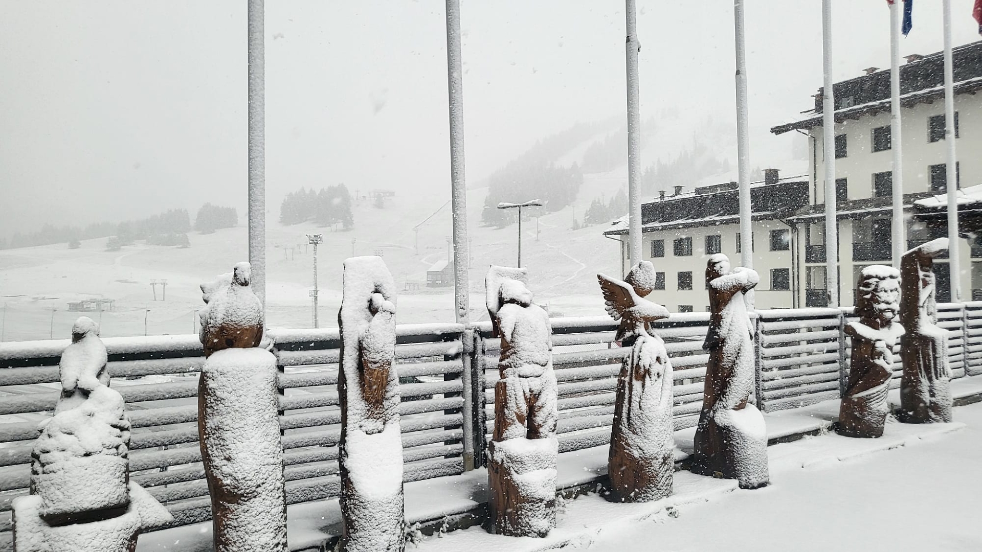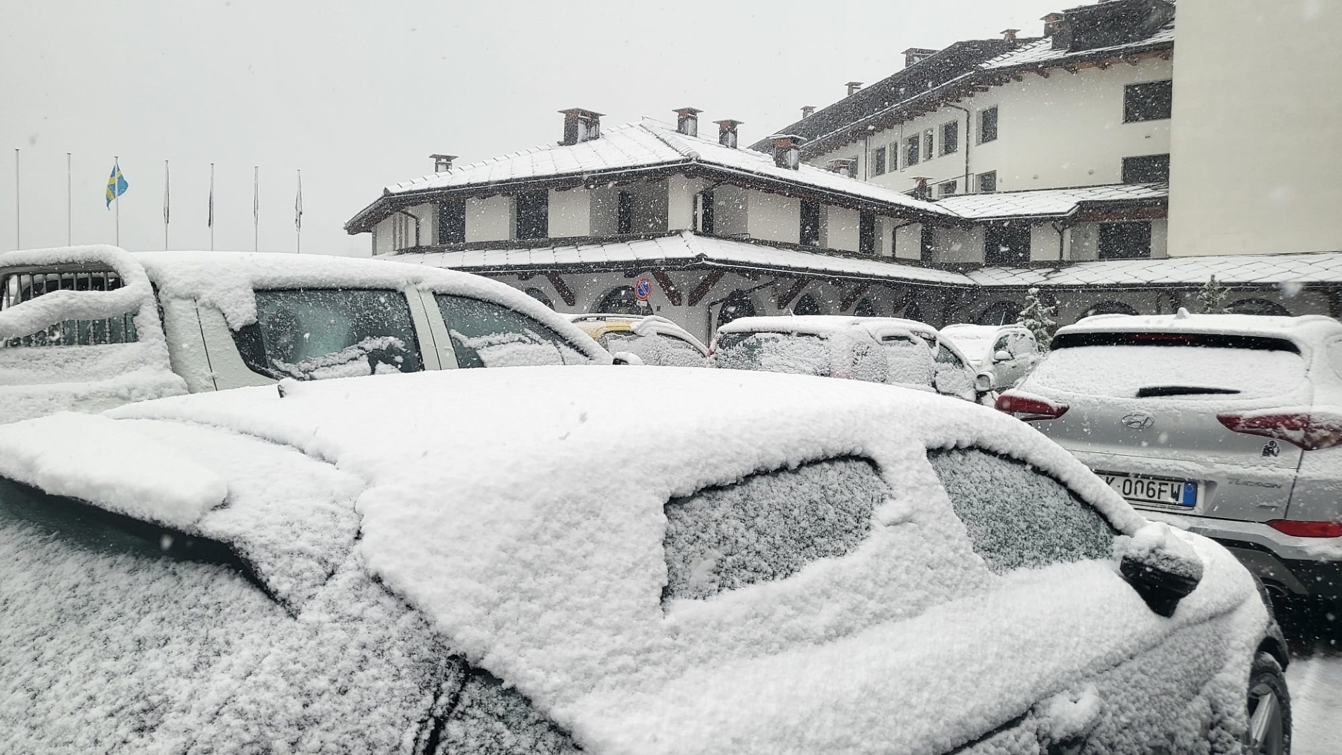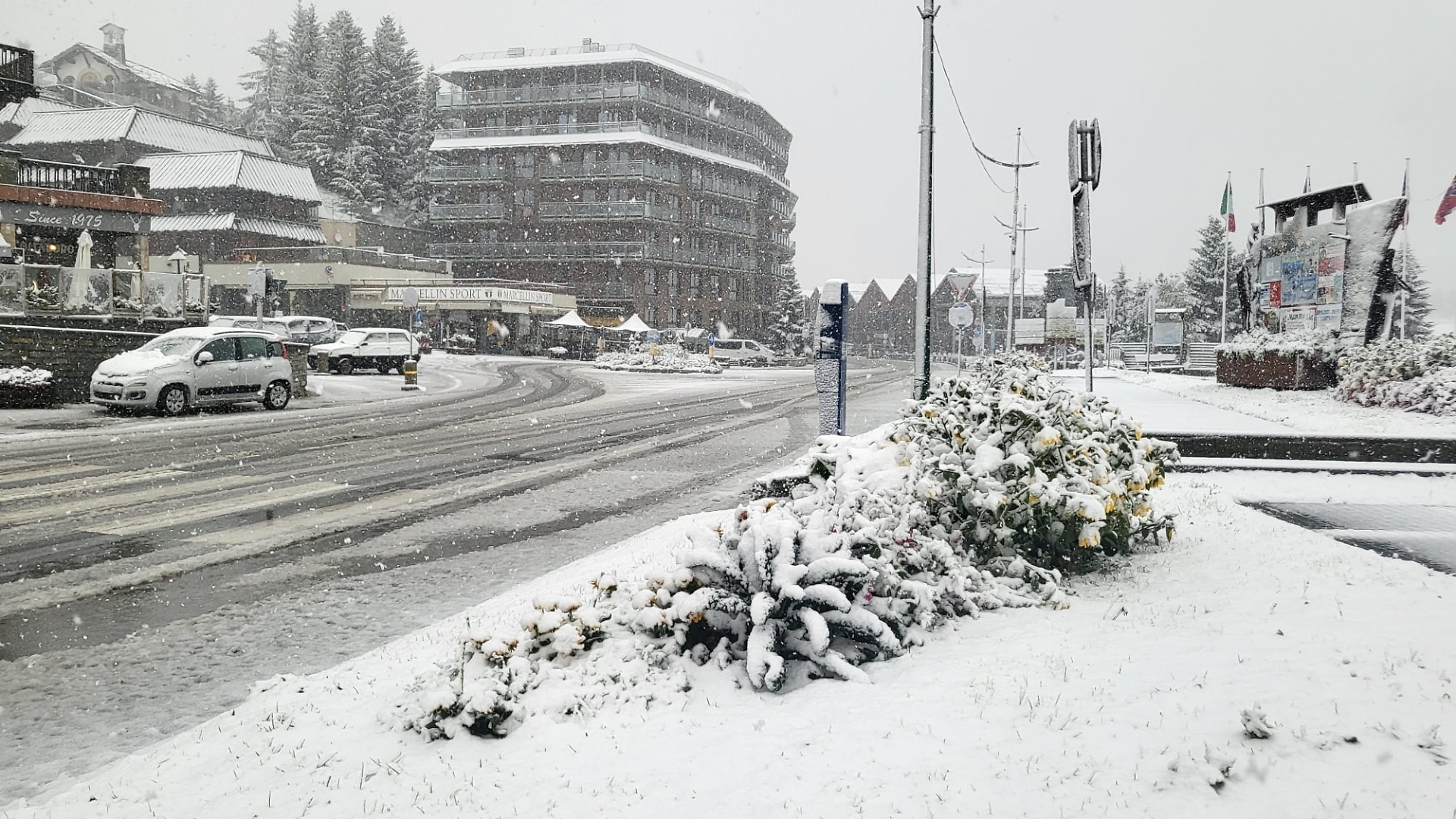 Nel momento in cui scriviamo, le 10 del mattino, sulle auto parcheggiate, sulle piste da sci e nelle aiuole ci sono circa 5 centimetri di neve che, però, comincia a fermarsi anche sulle strade. Inutile dire che neanche a 2mila metri di quota sono tanti quelli che il 28 agosto hanno montato sulle proprie auto gomme invernali e così chi non ha "obbligo" di restare in paese si sta rapidamente allontanando, prima di rischiare di restare bloccato. La neve infatti sta imbiancando anche le strade in uscita dal paese e imbiancate sono anche le cime dei monti di Pragelato, tra cui l'Albergian.