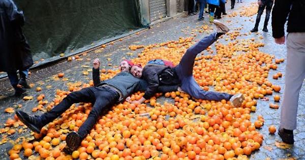 E' in pieno svolgimento la prima giornata della tradizionale Battaglia delle arance al Carnevale di Ivrea. Migliaia di persone in queste ore affollano le strade della città, già ricoperte dalle arance utilizzate dai "contendenti". E proprio la poltiglia che si è formata sull'asfalto sarebbe all'origine del primo incidente della giornata, che ha costretto una persona al trasporto in ambulanza al pronto soccorso.