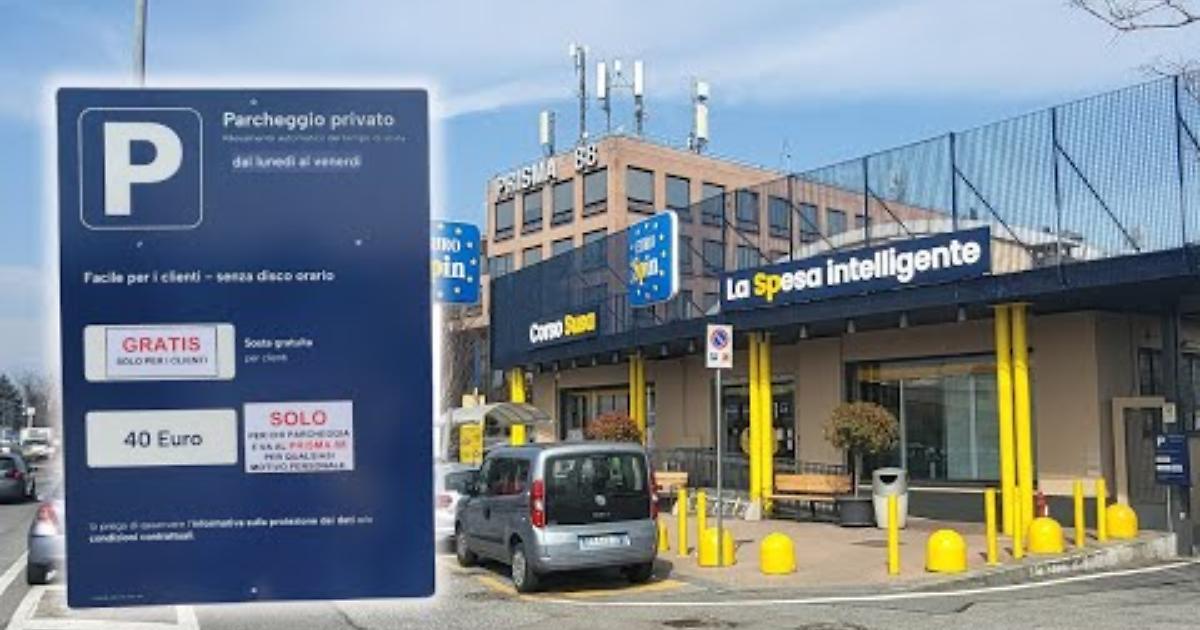 Parcheggiare all'Eurospin di Rivoli costa 40 euro per due ore, ma solo per chi non è cliente del supermercato.
