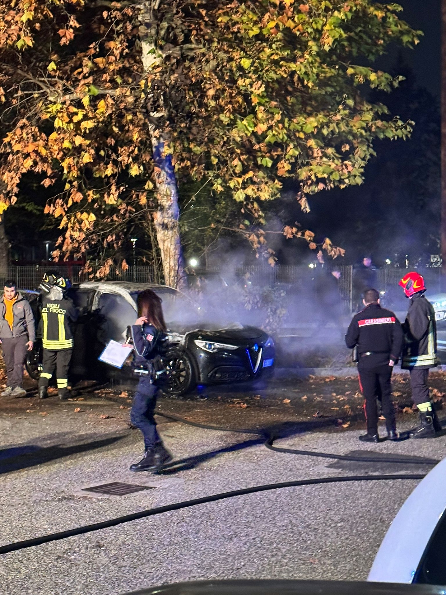 Fortunatamente il conducente, che aveva lasciato l’auto solo pochi minuti prima, è uscito illeso. Restano ancora da chiarire le cause del rogo: tra le ipotesi al vaglio ci sarebbero un possibile cortocircuito o un guasto tecnico, ma non si esclude nemmeno la pista dolosa. Secondo alcuni presenti, la stessa famiglia proprietaria della Stelvio avrebbe subito, appena una settimana fa, il furto di un’altra vettura, un dettaglio che alimenta i sospetti. L’auto è andata completamente distrutta, ma grazie al tempestivo intervento dei soccorritori l’incendio non si è propagato ad altri veicoli o abitazioni vicine.