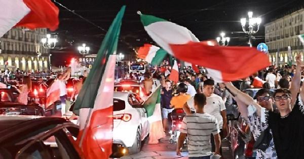 Fumogeni, colpi di clacson, petardi e centinaia di bandiere dell'Italia che sventolavano fino a tarda notte. Una folla di tifosi in festa ha invaso piazza Vittorio martedì sera dopo l'ultimo rigore messo a segno da Jorginho che ha permesso alla nostra nazionale di battere le furie rosse spagnole e di accedere alla finale dei campionati europei. Una vittoria sofferta ma quanto mai desiderata dai tifosi e da migliaia di giovani accorsi anche da fuori città per festeggiare finalmente tutti insieme dopo un anno e mezzo di restrizioni e divieti. Era infinita la fila di auto che procedevano in carovana su via Po: la gente si affacciava dai finestrini, si sedeva sul cofano e spuntava perfino dai bagagliai aperti, agitando tricolori e cantando a squarciagola l'inno che ci ha portato tanta fortuna nei Mondiali del 2006. Il cielo sopra piazza Vittorio era attraversato da palloni da calcio che bucavano le nuvole colorate prodotte fumogeni. L’euforia incontenibile per la vittoria si è protratta fino alle due di notte tra fischi di trombette a ripetizione, rombi dei motori e sgommate. Diverse persone sono anche salite sul tetto di un bus. L’autista ha dovuto fermare la corsa per evitare di investire le centinaia di tifosi azzurri che invadevano le strade. A festeggiare c'era anche qualche famiglia con bambini al seguito. Ma miracolosamente non si è verificato nessun incidente.