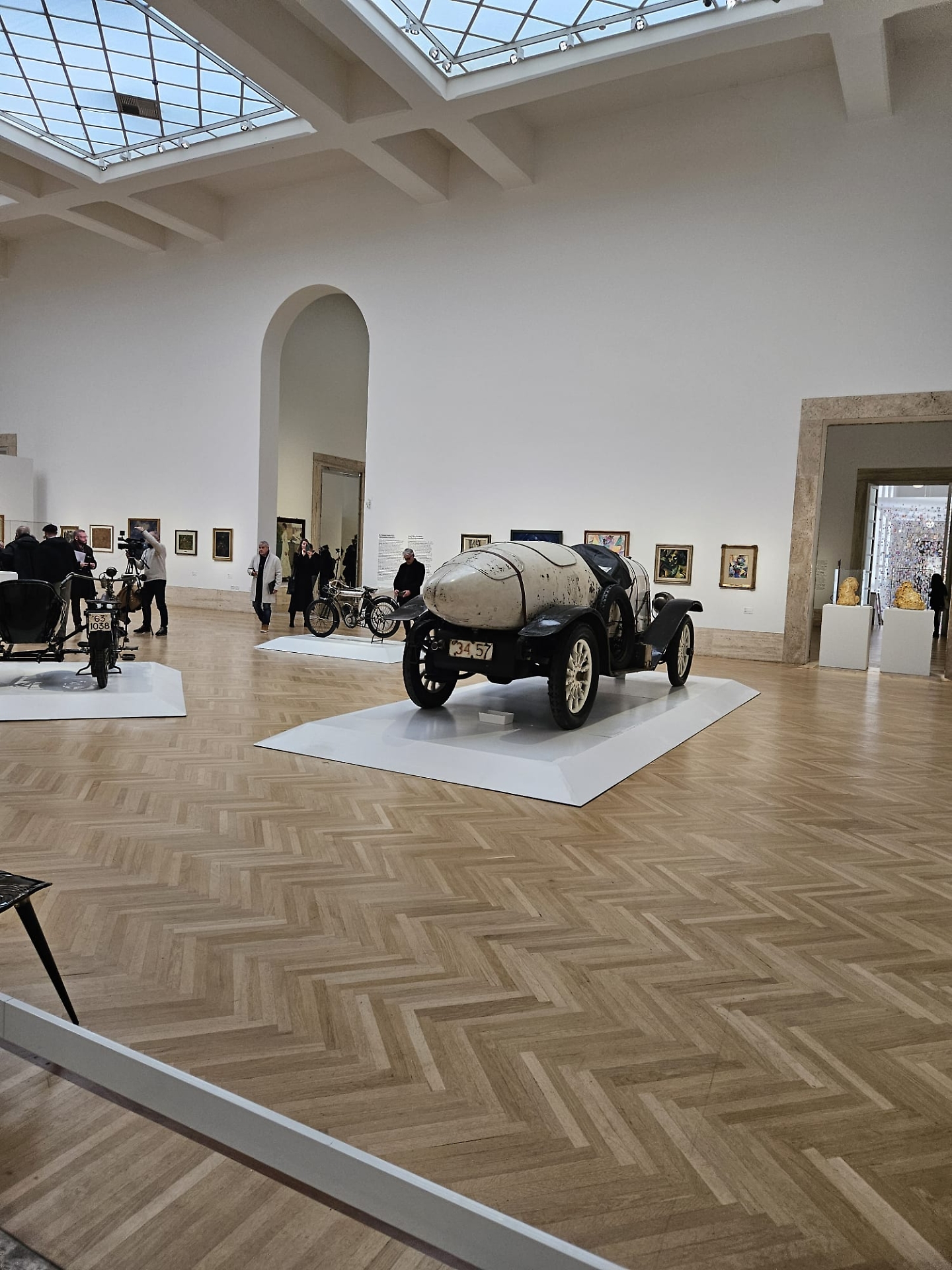 Il tempo del Futurismo è stato delineato ottant’anni fa quando, era il 2 dicembre del 1944, moriva Filippo Tommaso Marinetti, il padre del movimento più discusso della cultura italiana. La prima avanguardia del Novecento che ancora oggi fa parlare, riflettere, pensare e litigare. Così com’è accaduto nei mesi passati quando fu annunciata l’inaugurazione della mostra dal titolo, appunto, “Il tempo del Futurismo” che si è aperta ieri presso la Gnam di Roma (in viale delle Belle Arti, 131 fino al 28 febbraio), ma che prima di arrivare a questa fatidica data è passata attraverso malumori politici, proroghe, diffide, comitati scientifici saltati. Una mostra sul Futurismo, additato come movimento della destra, sembrava essere un capriccio dell’ex ministro della Cultura Gennaro Sangiuliano ma, dopo l’inaugurazione avvenuta il 2 dicembre, anche le più sottili illazioni sono scemate. Promossa e sostenuta dal Ministero della Cultura - oggi nella persona di Alessandro Giuli succeduto a Sangiuliano dopo il caso Boccia - e curata da Gabriele Simongini, l’esposizione si sviluppa su quattromila metri quadri in 26 sale, 70 i musei prestatori e 350 opere fra quadri, sculture, progetti, disegni, oggetti d’arredo, film, un centinaio fra libri e manifesti, un idrovolante, automobili, motociclette e strumenti scientifici d’epoca, più due installazioni site-specific. Un patrimonio che ha messo a tacere, per ora, anche i più sofisticati fruitori d’arte.