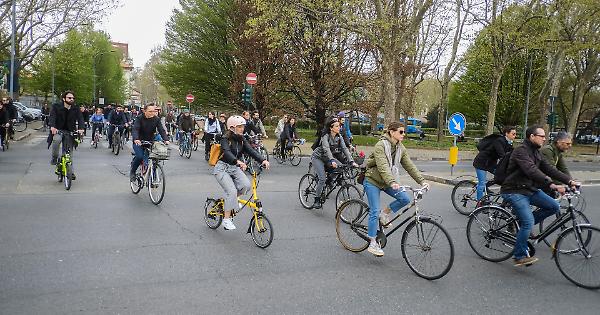 Cadono le prime gocce di pioggia sul Cimitero Monumentale di Torino quando, in lontananza, si sente il tintinnio di decine di campanelli di biciclette. E' il corteo che accompagna il feretro di Gabriele Del Carlo, il giovane staffista del Comune di Torino, rimasto ucciso insieme all'amico Velio Coviello, mentre facevano sci alpinismo.