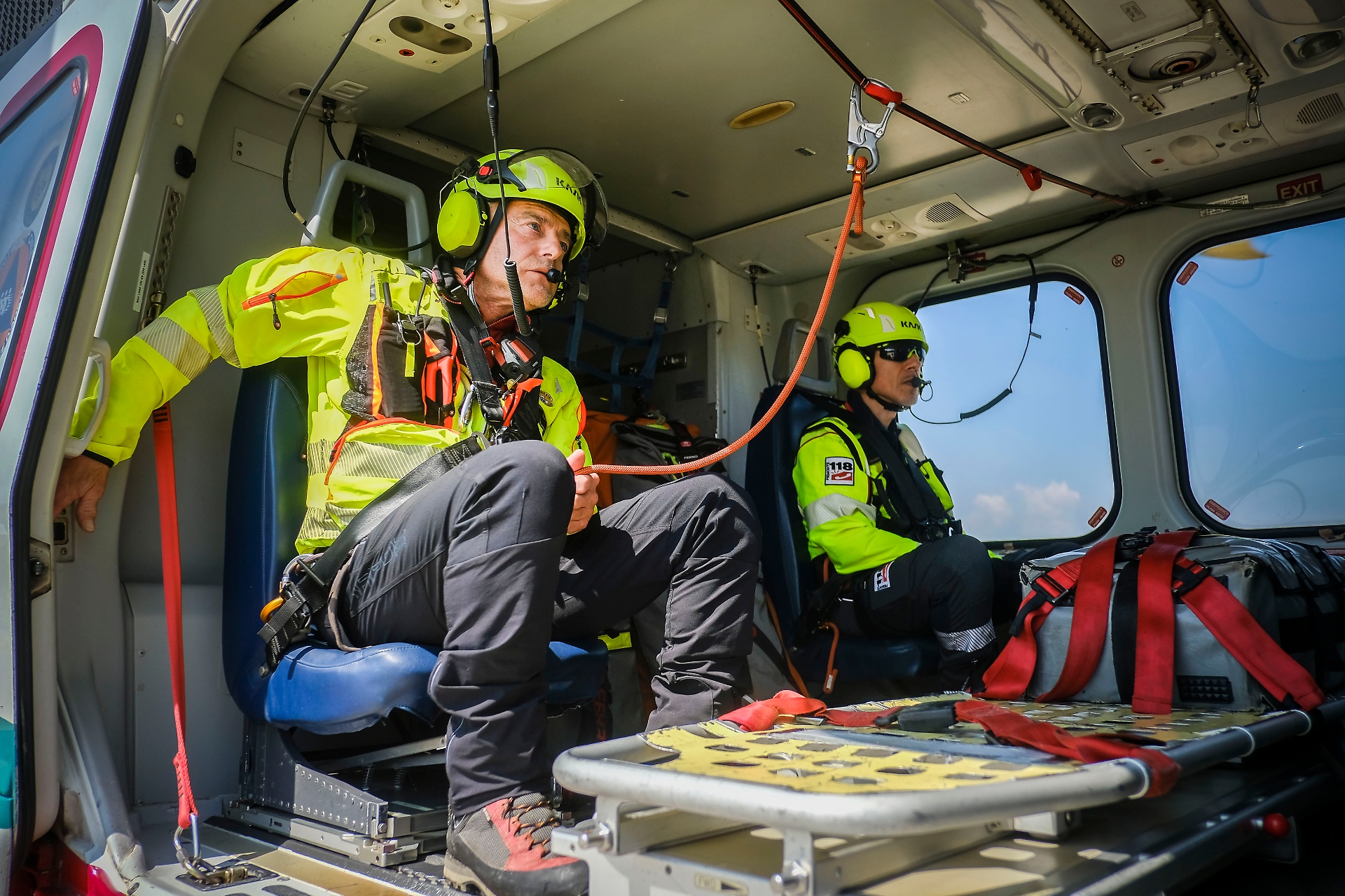 A bordo ci sono sempre cinque o sei persone: un pilota, che di notte diventano due; un tecnico di volo; un tecnico del Soccorso alpino; un infermiere e un medico (per lo più specialisti in Anestesia e Rianimazione o Medicina d’urgenza).