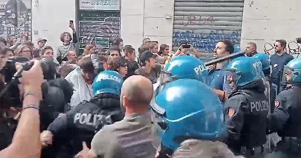 Ecco il video degli scontri avvenuti questa mattina, 3 ottobre, in centro a Torino in occasione della visita del presidente del consiglio, Giorgia Meloni, sotto la Mole per il Festival delle Regioni. Polizia e manifestanti si sono affrontati in via delle Rosine angolo via Principe Amedeo.