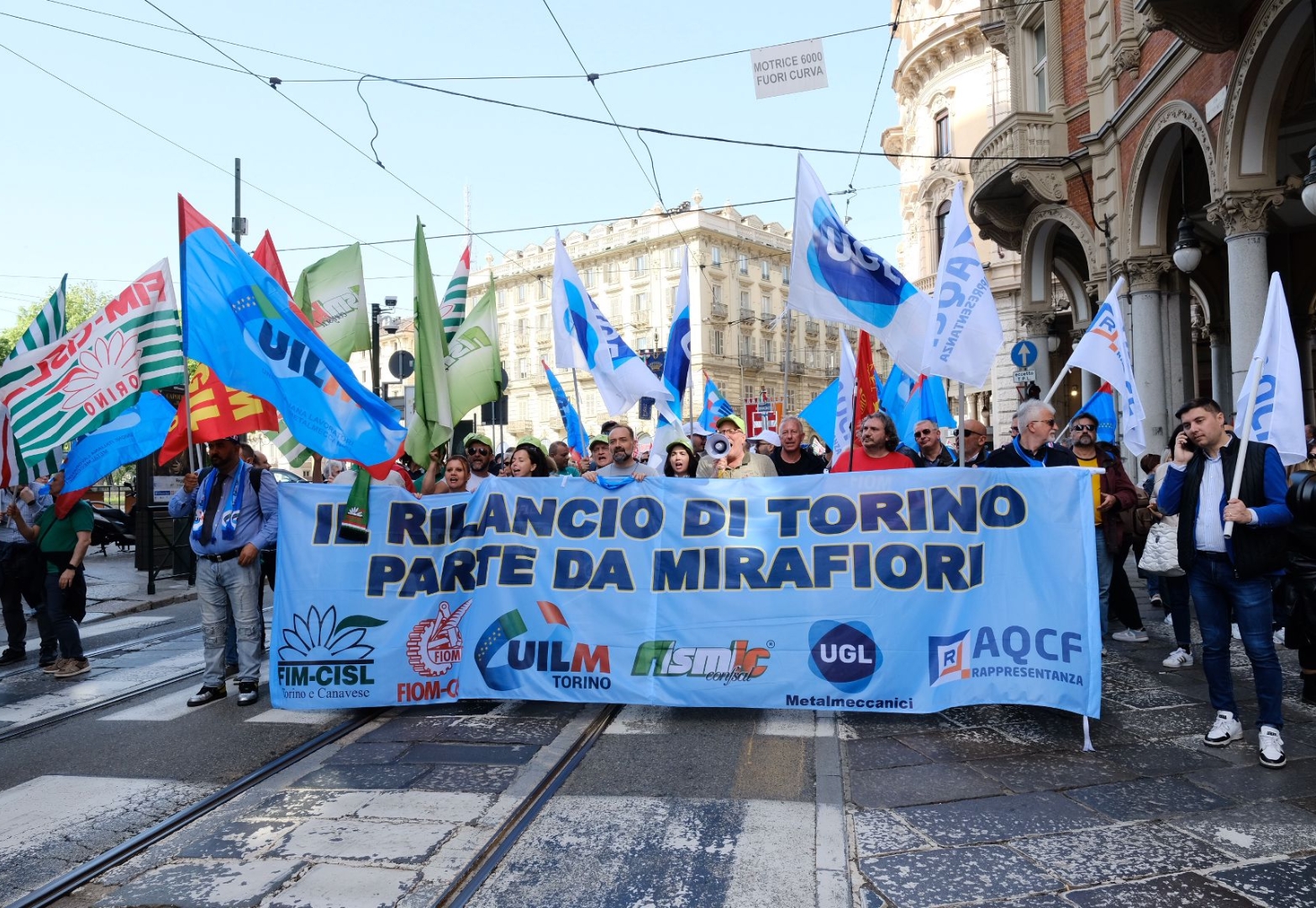 Torino scende in piazza per Mirafiori: migliaia di persone hanno sfilato in corteo tra da piazza Statuto e piazza Castello nella manifestazione di ieri organizzata dai sindacati uniti in 8 ore di sciopero per chiedere lavoro e occupazione nel settore automotive. Dietro gli striscioni non c'erano solo i lavoratori di Mirafiori e dell'indotto in crisi, dalla Delgrosso alla Te Connectivity e la Lear, ma anche la società civile, tutta la classe politica torinese, studenti e numerosi imprenditori. Un segnale importante dopo l'accompagnamento alla porta di corso Tazzoli di oltre 1.500 lavoratori e il crollo produttivo della 500 elettrica. «Siamo in 12mila in piazza a Torino per chiedere il rilancio dell’automotive e di Mirafiori» gridano i sindacati Fiom-Cgil, Fim-Cisl, Uilm, Uglm, Fismic e Aqcf, promotori della manifestazione. Mentre Exor, la holding presieduta da John Elkann che controlla Stellantis, Iveco e Juventus, fa un utile di 4,2 miliardi.