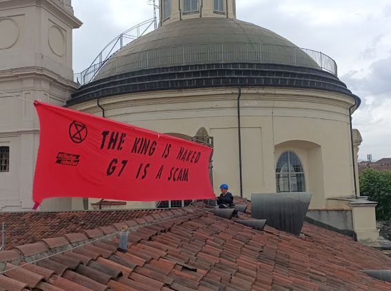 Durante il secondo giorno del vertice del G7 sul Clima, l'Energia e l'Ambiente, alcuni attivisti di Extinction Rebellion hanno portato avanti una protesta salendo sul tetto della Facoltà di Biologia. Da lì hanno srotolato uno striscione con una scritta che, tradotta in italiano, dice "Il re è nudo, il G7 è una truffa".