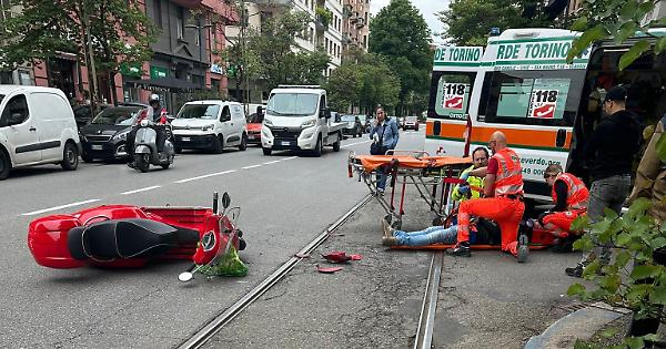 Il primo incidente è avvenuto intorno alle 13 di oggi, martedì 30 aprile, in corso Sommeiller angolo via Gioberti: lo scooter, una Vespa, si è schiantato contro il lato destro di una Peugeot 5008. La dinamica e la responsabilità dell'impatto sono ancora da chiarire ma è stato il conducente della Vespa ad avere la peggio: è stato sbalzato a terra ed è rimasto dolorante sull'asfalto. L'automobilista si è fermato e ha chiamato i soccorsi: i sanitari della Croce Verde di Torino sono arrivati in pochi minuti e hanno soccorso lo scooterista, un 36enne trasportato in "codice verde" all'ospedale Mauriziano. Durante i soccorsi, sono stati bloccati i tram della linea 16.