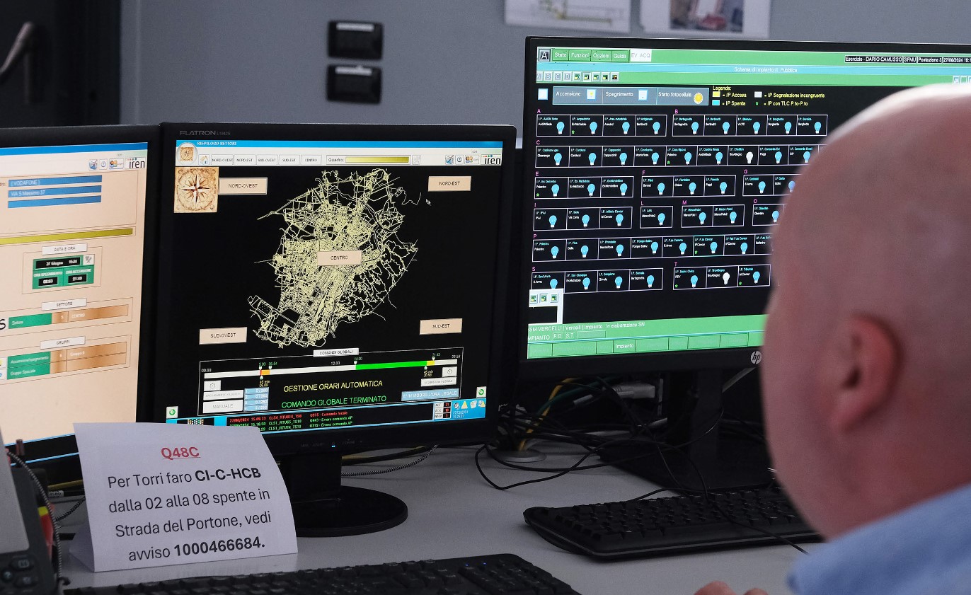 La centrale di telecontrollo di via Pianezza è aperta 24 ore su 24 e sette giorni su sette. Ha il compito di vigilare sugli oltre 2.700 chilometri di cavi che portano corrente di media tensione in tutta Torino. Sono oltre 3mila invece i chilometri deputati alla distribuzione della bassa tensione, che arriva direttamente nelle case. «Da questa sala controlliamo la distribuzione urbana a Torino, Parma e Vercelli» precisa l’ingegner Roggero. In questi spazi lavorano i tecnici che controllano l’evoluzione del carico lungo la rete e - soprattutto - intervengono in caso di guasti e disservizi.