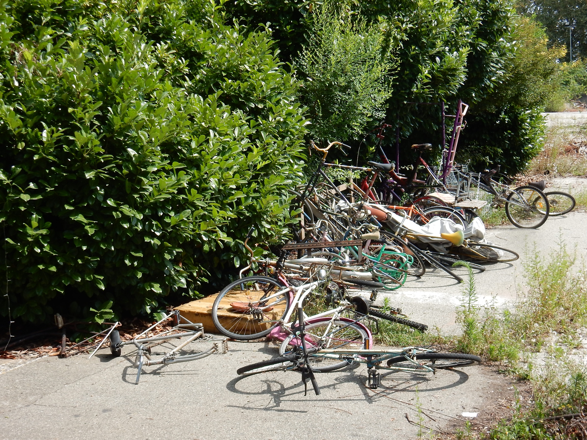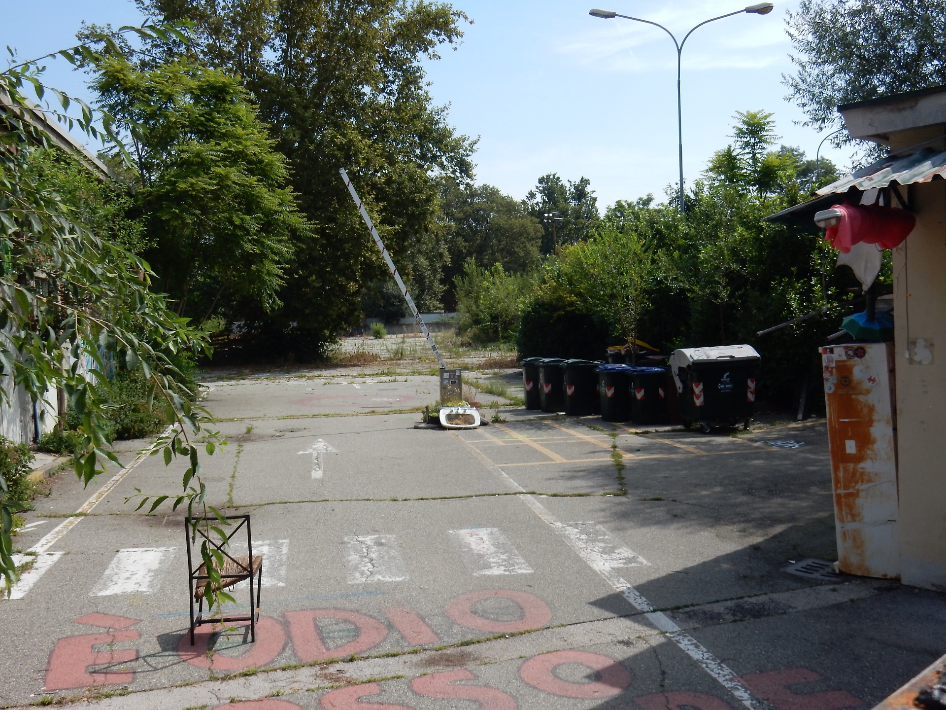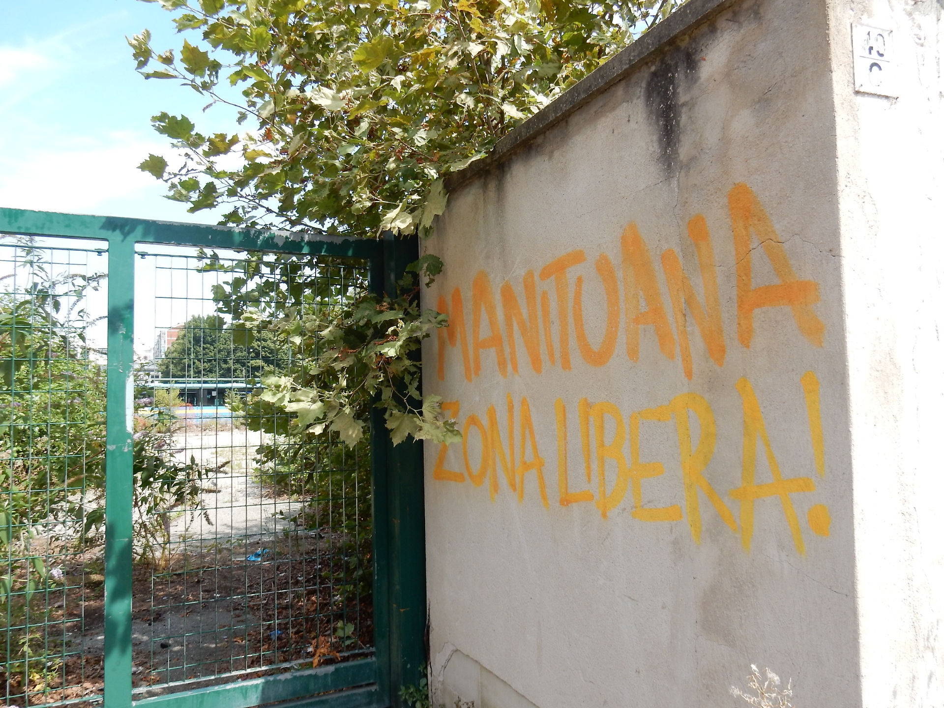 Cancelli chiusi, nessuna traccia di persone (né dentro né fuori), molte bici nascoste dietro una siepe e la solita sensazione di abbandono. Eccezion fatta per qualche scritta sui muri. Eppure Manituana, così è stato ribattezzato ai tempi l’ex deposito Amiat di via Padova, vive ancora.
