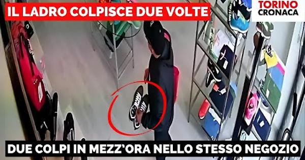 In via Nicola Fabrizi, a Torino, è caccia al ladro che sabato, fingendosi un cliente interessato alla merce esposta, si è introdotto in un negozio di scarpe, riuscendo a mettere a segno ben due colpi in appena mezz'ora. Il primo intorno alle 10.30, il secondo alle 11. Il video girato dalle telecamere del negozio mostra chiaramente lo stesso individuo mentre, nella prima occasione, si appropria di un paio di scarpe esposte in vetrina, infilandole in un sacchetto rosso, per poi avviarsi all'uscita. Poi, visto che gli era andata bene, lo stesso malvivente torna dopo mezz'ora, approfitta del fatto che la commessa è impegnata nell'altra stanza con un vero cliente, e ripete lo stesso iter, questa volta appropriandosi di tre paia di scarpe.