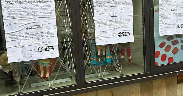 Una nuova azione violenta di Extinction Rebellion ha preso di mira questa mattina l’Ufficio Relazioni con il Pubblico (Urp) del Consiglio regionale del Piemonte, nel centro di Torino. Le vetrine dell’edificio sono state interamente ricoperte di manifesti affissi con colla e carta.