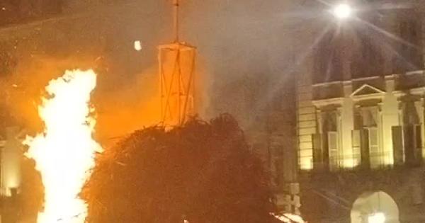 l farò è caduto, ma sembra essere incerto. Innescata alle 22 dal sindaco di Torino Stefano Lo Russo e le due storiche maschere Gianduia e Giacometta, la pira che sancisce "l'anno torinese che verrà". E dopo qualche minuto di tribolazione, nonostante il vento che si auspicasse spirasse dalla parte di Porta Nuova, il toro è caduto.