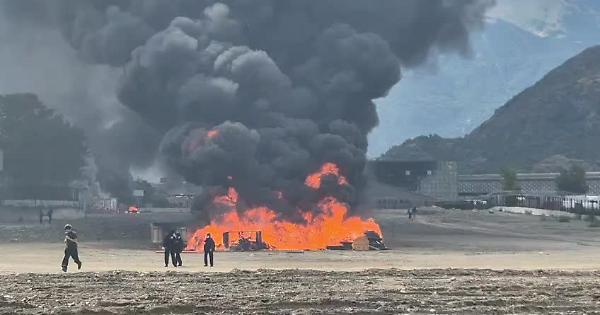 Fiamme e una nube di fumo visibile da chilometri di distanza. Ecco cosa hanno fatto i No Tav in marcia oggi una volta raggiunta la parte di cantiere in località Traduerivi di Susa.
