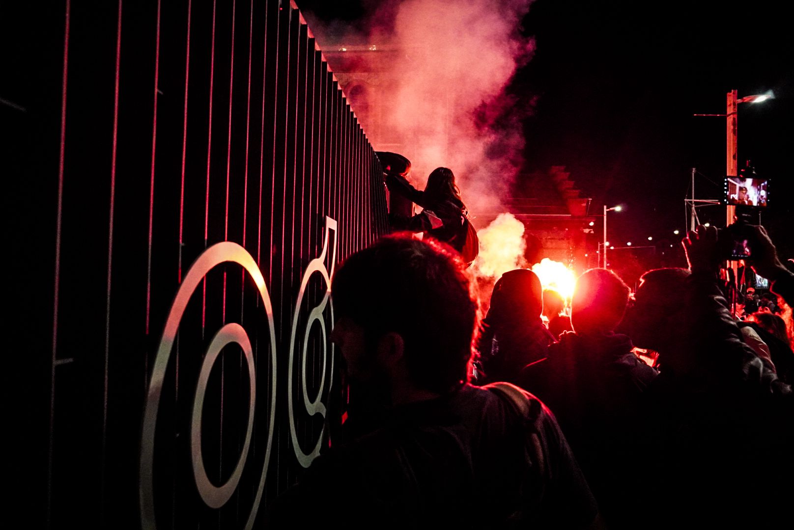 I manifestanti hanno scavalcato indisturbati le cancellate delle Ogr, per poi iniziare con atti di vandalismo tra i tavolini e le postazioni, imbrattando le auto nel cortile.